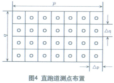 1) 四點法:把同一側(cè)兩燈柱間的測量路段分成若干個大小相等的矩形網(wǎng)格,把測點設置在每個矩形網(wǎng)格的四角,圖7為四點法布點時的測點布置圖。