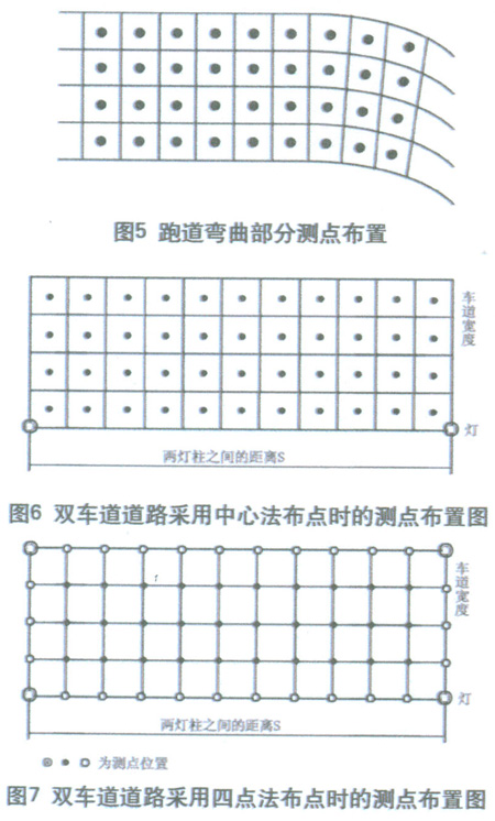 照度測量的范圍,在縱方向(沿道路走向)應包括同一側(cè)的兩個燈桿之間的區(qū)域;而在橫方向,單側(cè)布燈時應為整個路寬;雙側(cè)交錯布燈、對稱布燈或中心布燈時可為1/2路寬。