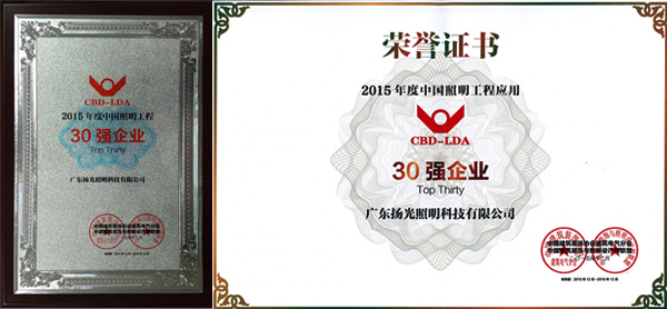 揚(yáng)光照明榮獲“2015年度中國(guó)照明工程30強(qiáng)企業(yè)”稱號(hào)