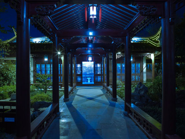 塑造庭院夜景重要的是景觀(guān)立意、定位以及希望傳遞給人們的感受,庭院空間是一般建筑物室內(nèi)室外空間之間的過(guò)渡,因而它的夜景形象塑造目標(biāo)應(yīng)給人一種家居感和溫馨感,同時(shí)又要給人一種室外環(huán)境的開(kāi)敞感和公共感,因此,它的燈光景觀(guān)構(gòu)成中既要有精致細(xì)膩的墻面紋飾光影圖案,又應(yīng)有街道或廣場(chǎng)等開(kāi)敞空間中所使用的燈光手法及空間氛圍;庭院夜景的塑造包括對(duì)圍合庭院的各單體建筑物立面的照明表現(xiàn)、各單體建筑物室內(nèi)燈光的適度配置、庭院之外延伸空間的照明、“借景”的燈光塑造、庭院內(nèi)部配置古典景觀(guān)燈的燈光塑造等。