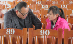 總經理李保勝一對一的在和貧困山區(qū)學生進行談心,