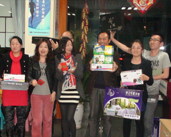 快樂會(huì)議中,有員工層抽獎(jiǎng)活動(dòng),管理層抽獎(jiǎng)活動(dòng)以及唱歌,小品等多個(gè)節(jié)目,員工層和管理層的抽獎(jiǎng)活動(dòng)獎(jiǎng)品豐富,有遠(yuǎn)夢(mèng)夏被、高級(jí)茶葉、高級(jí)茶具、以及現(xiàn)金大獎(jiǎng)等,活動(dòng)現(xiàn)場(chǎng)受到大家的聲聲喝彩!同時(shí),我們也為本月過生日的同事送上了鮮花以及全體員工的祝福,讓整個(gè)活動(dòng)更顯溫馨!