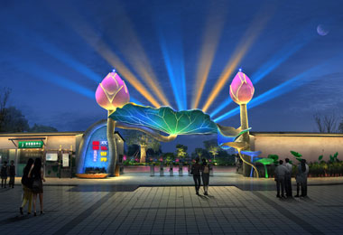 使用燈光技術(shù)豐富其色彩,多彩的空中激光束打造了入口環(huán)境的燈光效果,吸引了來自周圍地區(qū)的游客,提高公園的形象并在夜間提高其經(jīng)濟效益。
